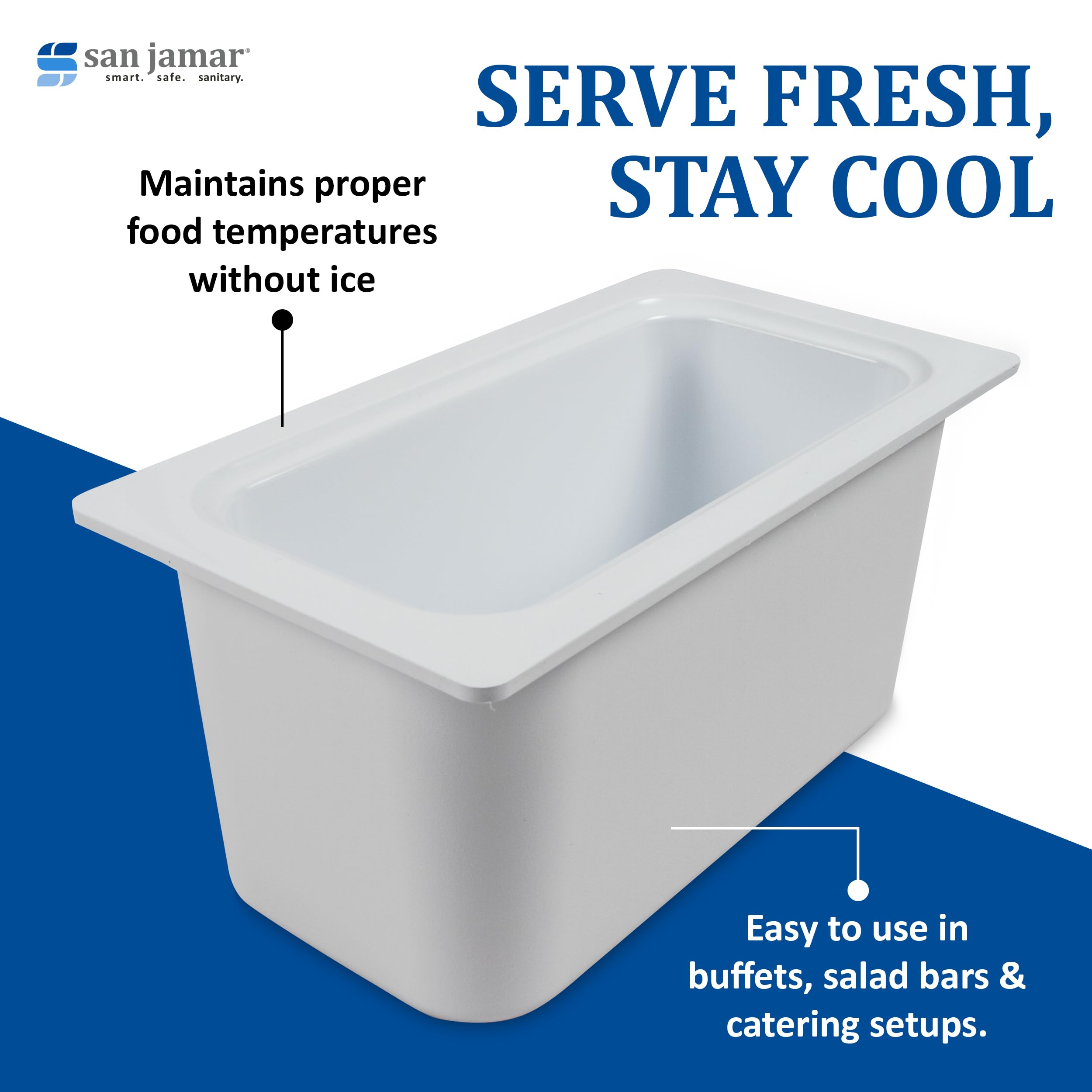San Jamar Chill-It 1/3-Size Food Pan, 6" Deep Plastic Insulated Food Container for Kitchen and Restaurant, ABS, 1/3 Size, White